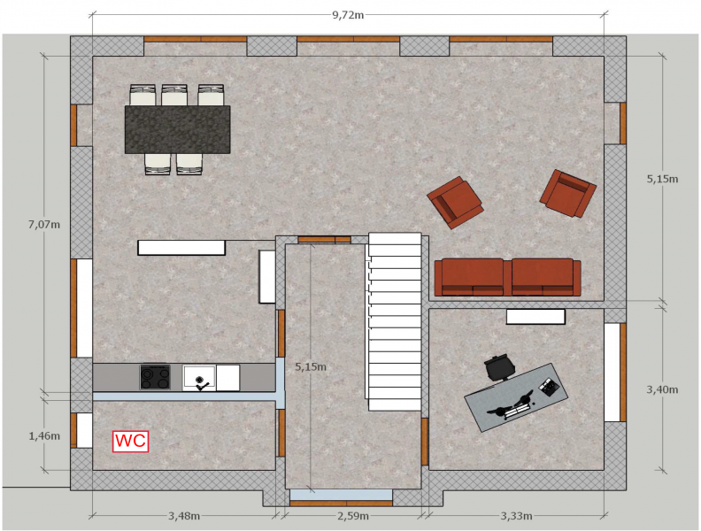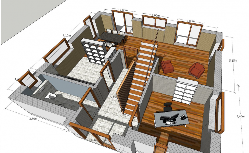 Jetzt galt es uns zu überlegen wie unser Haus unter Berücksichtigung der Größe des Grundstückes und den Vorgaben der Stadt aussehen könnte. Mir fiel ein, dass unser lieber Freund und Nachbar Wolf Architekt ist und ich fragte ihn, ob er ein paar Ideen dazu habe. Sehr zu unserem Glück erstellte er eine komplette Vorabplanung für uns und brachte tolle Ideen und Anregungen ein. So entstand sehr schnell eine erste Version eines Hauses, welches voll und ganz auf unsere Wünsche und Bedürfnisse innerhalb des Machbaren zugeschnitten war.