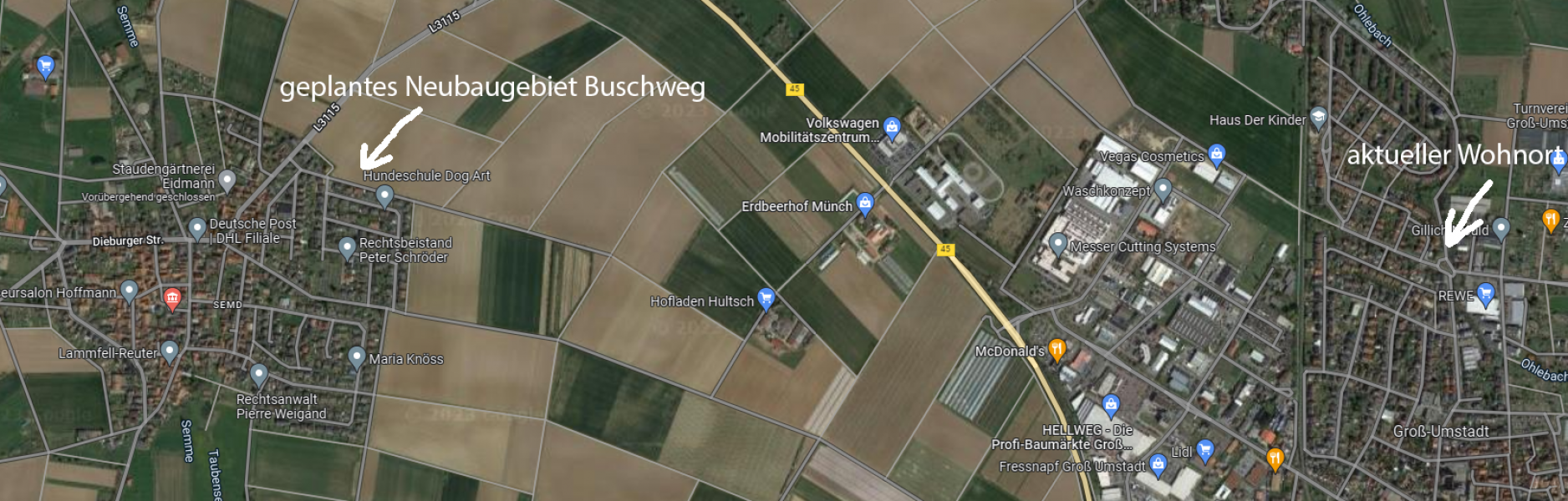 Nach gefühlt ewiger Suche, inklusive Besichtigung etlicher Grundstücke und Häuser, war es im Sommer 2021 so weit; wir bekamen von der Stadtverwaltung Gross-Umstadt die Nachricht, dass sie uns ein Grundstück im geplanten Neubaugebiet im Ortsteil Semd anbieten könne. Die Freude war riesig, denn wir hatten uns dafür zwar beworben, jedoch eigentlich wenig Hoffnung in die Auswahl zu kommen, denn es gibt ein ausgeklügeltes Punktesystem und die Liste der Bewerber war lang.