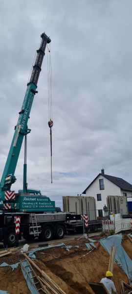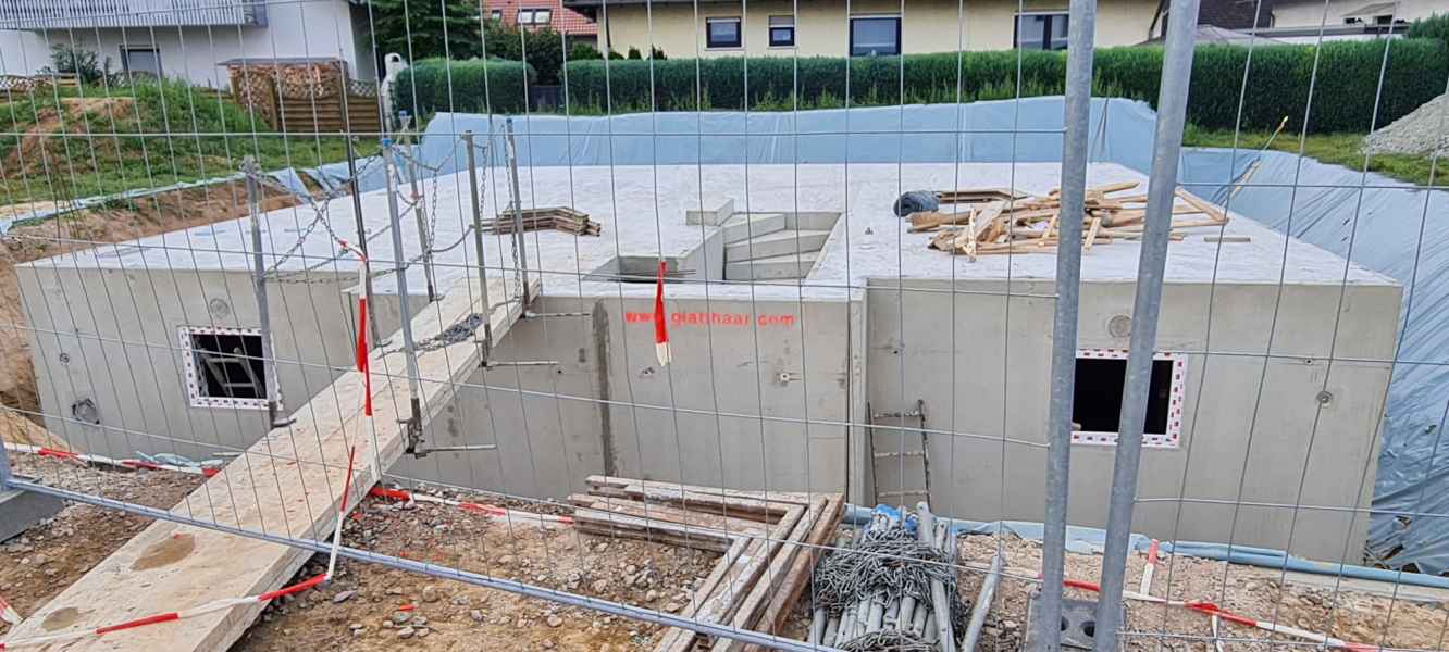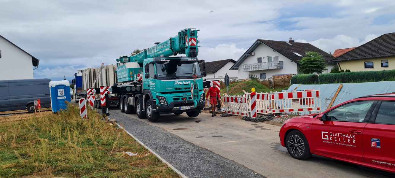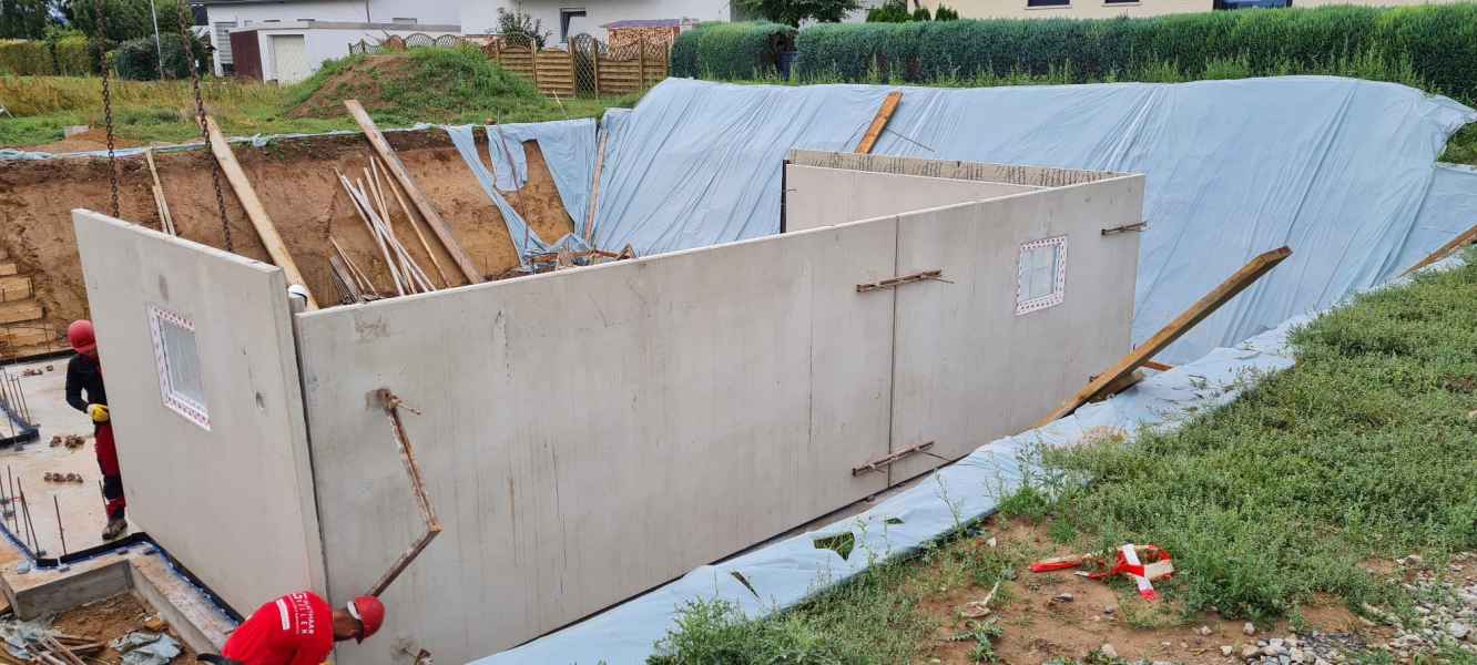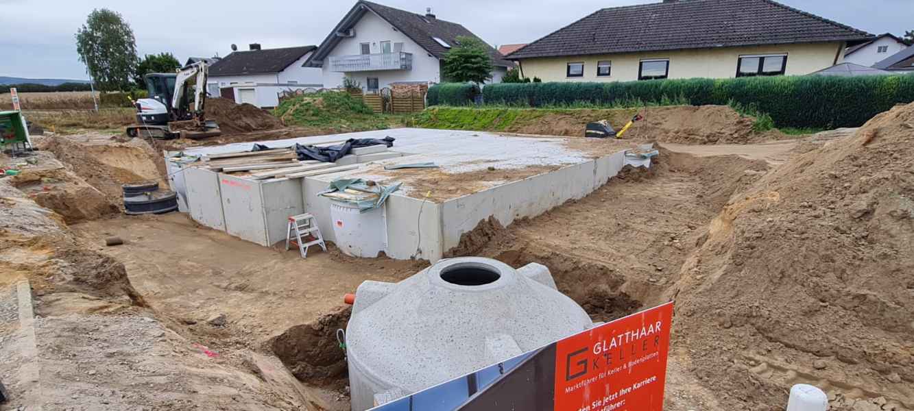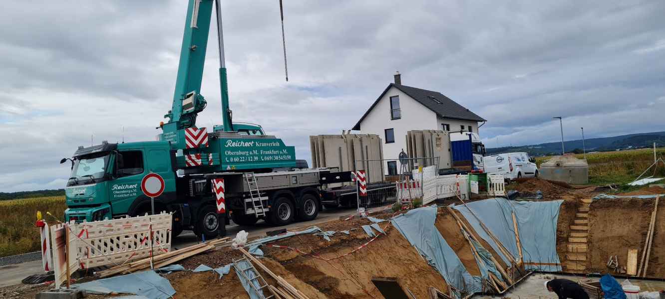 Nun ist es soweit. Der Keller steht!! Die Firma Glatthaar hat den Keller in gefühlter Rekordzeit aufgestellt und betoniert. Unter der Leitung des Projektleiters Herrn Färber lief das Ganze wie am Schnürchen. Wir konnten uns entspannt zurücklehnen und den Aufbau genießen. Die Männer der beiden eingesetzten Kolonnen haben ihr Handwerk verstanden und auch dem Kranführer, Betonpumpenführer den Fahrern der LKW / Betonmischer und wer sonst noch alles beteiligt war möchten wir für einen, aus unserer Sicht reibungslosen Ablauf danken.