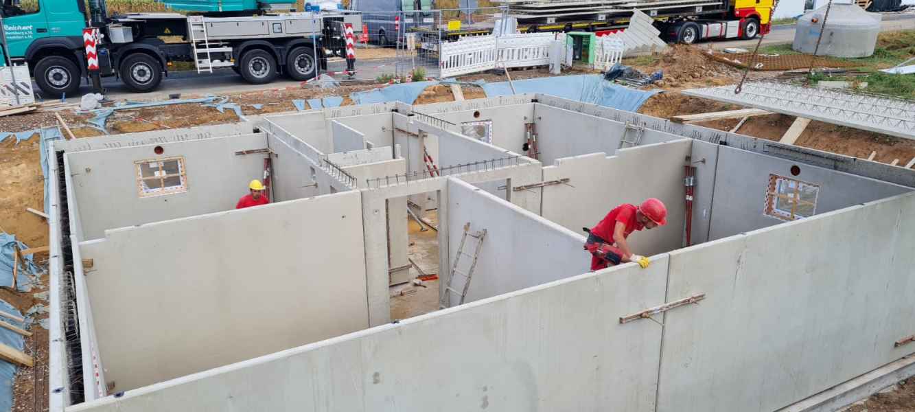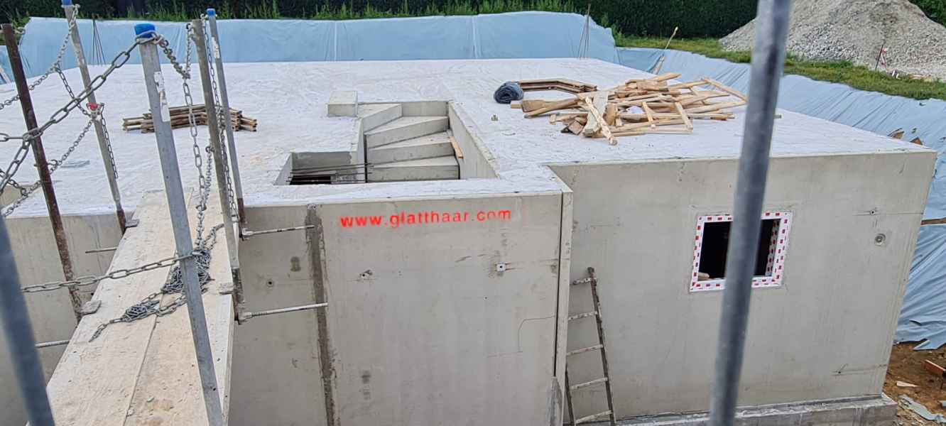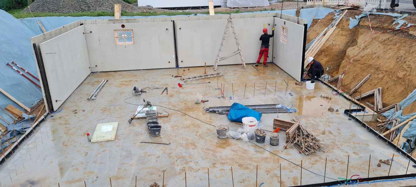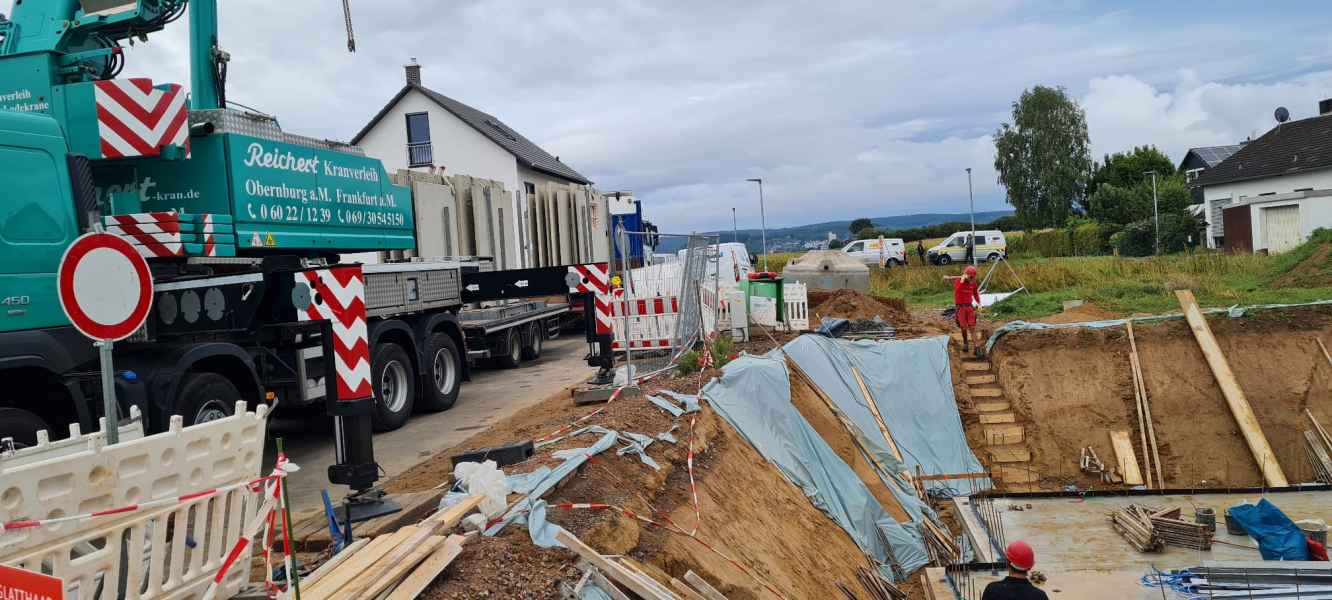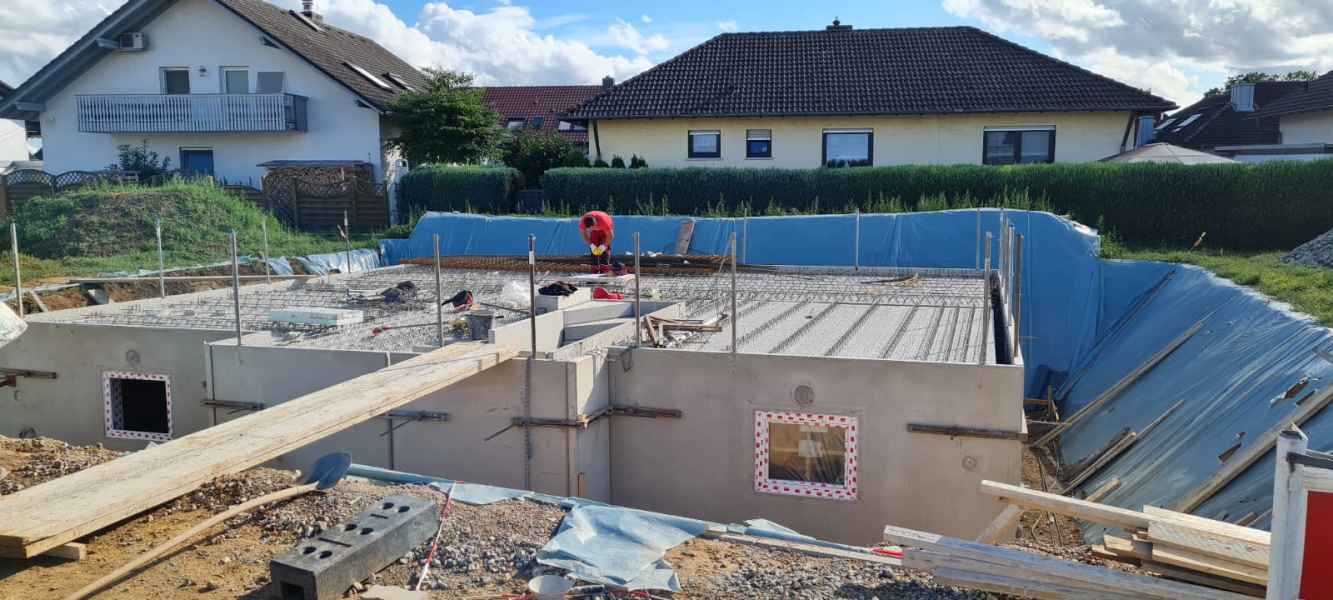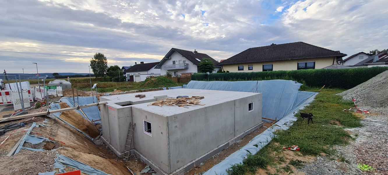 Nun ist es soweit. Der Keller steht!! Die Firma Glatthaar hat den Keller in gefühlter Rekordzeit aufgestellt und betoniert. Unter der Leitung des Projektleiters Herrn Färber lief das Ganze wie am Schnürchen. Wir konnten uns entspannt zurücklehnen und den Aufbau genießen. Die Männer der beiden eingesetzten Kolonnen haben ihr Handwerk verstanden und auch dem Kranführer, Betonpumpenführer den Fahrern der LKW / Betonmischer und wer sonst noch alles beteiligt war möchten wir für einen, aus unserer Sicht reibungslosen Ablauf danken.