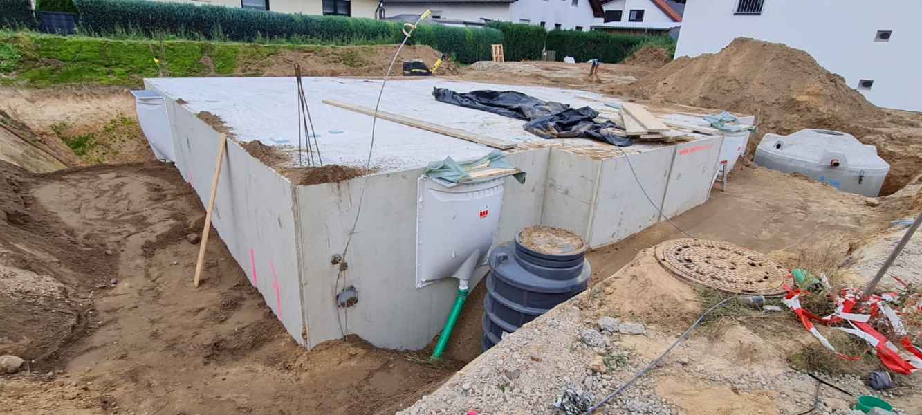 Weiter geht es dann bald mit den verbleibenden Tiefbauarbeiten (Verschütten, Zisterne einbauen, Rohre anschließen). Bis dahin!