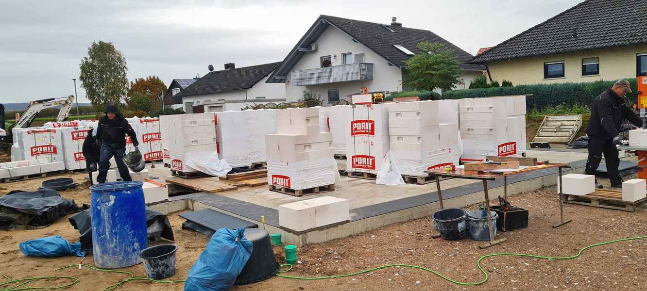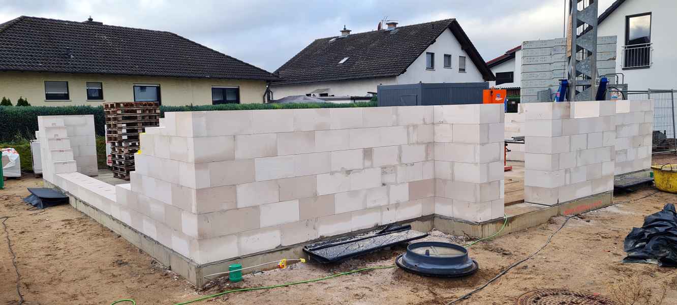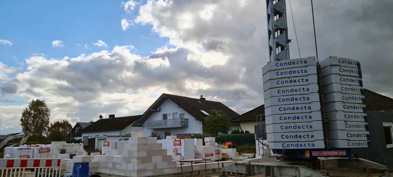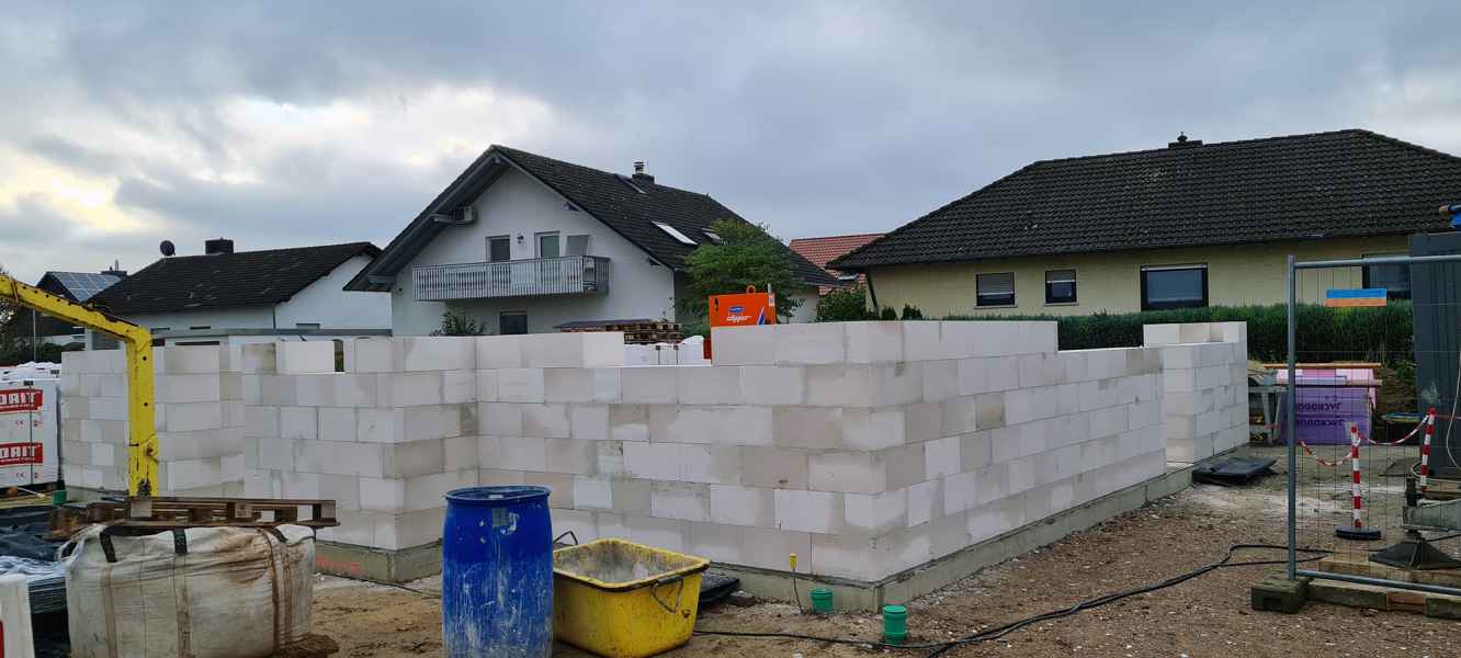 Am Donnerstag war es soweit: Die erste Reihe wurde gemauert! Die Männer von der Maurergemeinschaft Wenings GmbH haben mit der Arbeit begonnen. Am Samstag wurde der Kran gestellt und noch ein paar Reihen dazu gemauert. Am Montag soll es dann richig los gehen!! Hoffen wir, daß das Wetter mit spielt. Drückt uns die Daumen!