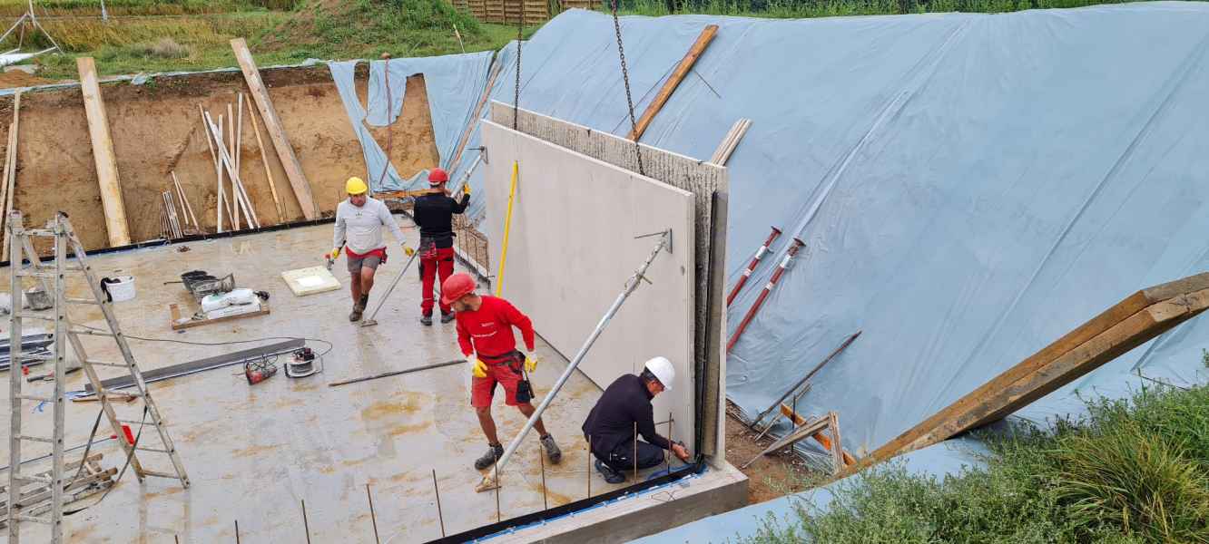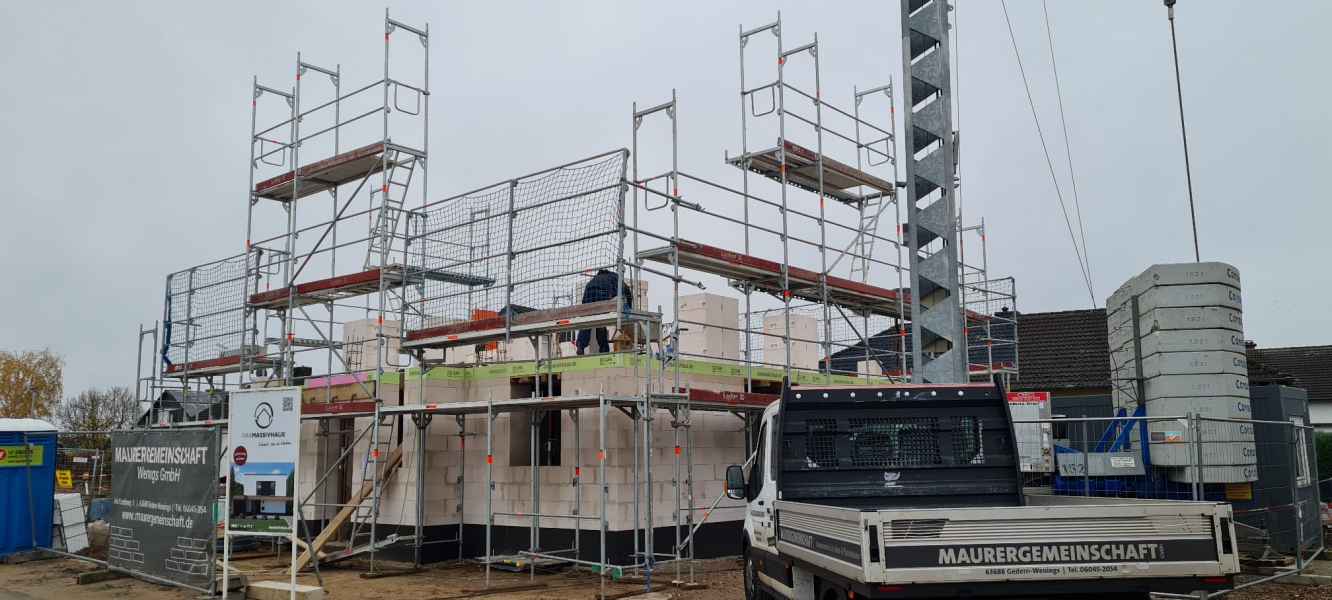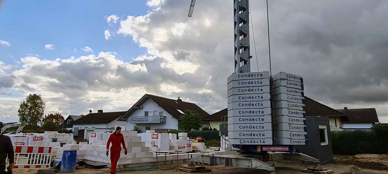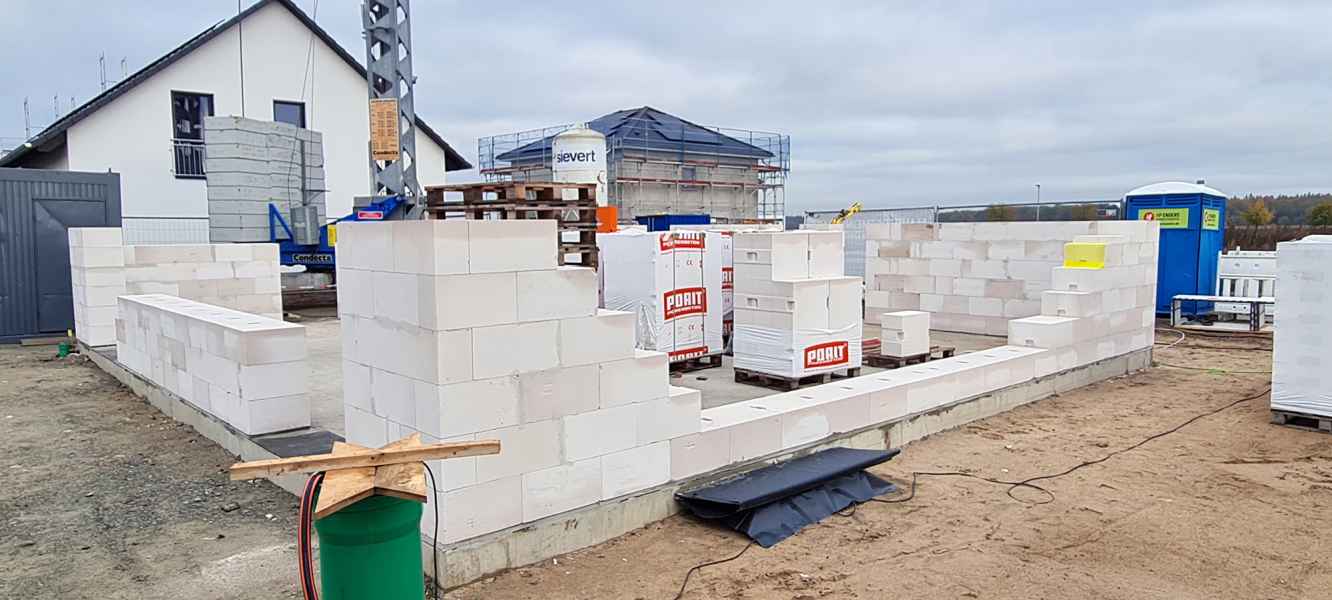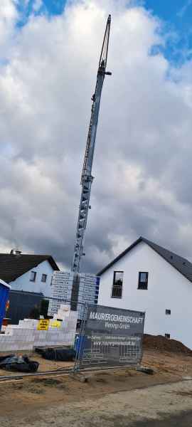 Am Donnerstag war es soweit: Die erste Reihe wurde gemauert! Die Männer von der Maurergemeinschaft Wenings GmbH haben mit der Arbeit begonnen. Am Samstag wurde der Kran gestellt und noch ein paar Reihen dazu gemauert. Am Montag soll es dann richig los gehen!! Hoffen wir, daß das Wetter mit spielt. Drückt uns die Daumen!